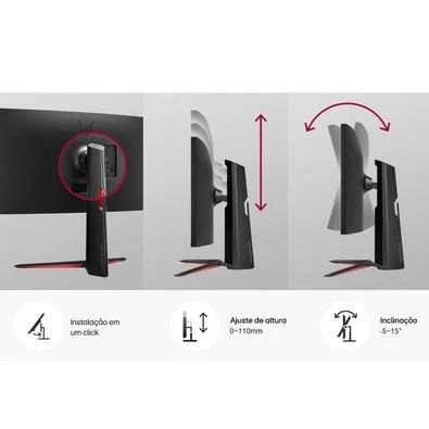 Com uma taxa de atualização de 160Hz, o monitor garante uma jogabilidade suave e fluida, especialmente durante a transição de quadros nos jogos. O tempo de resposta de 1ms (MBR) torna o monitor extremamente responsivo, proporcionando uma experiência de jogo mais ágil e precisa.